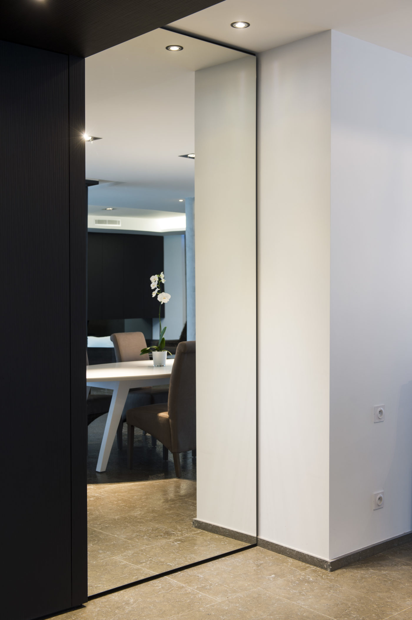 Très design les portes s’intègrent dans votre intérieur harmonieusement, donnent l’effet d’augmenter le volume de la pièce et en miroir permettent de se voir de plain-pied.